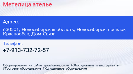 Метелица, ателье по адресу 630501, Новосибирская область, Новосибирск, посёлок Краснообск, Дом Связи в дальнейшем Организация, размещена в следующих категориях: