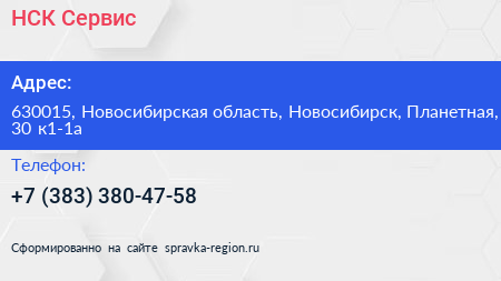 НСК-Сервис по адресу 630015, Новосибирская область, Новосибирск, Планетная, 30 к1-1а в дальнейшем Организация, размещена в следующих категориях: