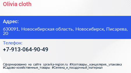 Olivia cloth по адресу 630091, Новосибирская область, Новосибирск, Писарева, 20 в дальнейшем Организация, размещена в следующих категориях: