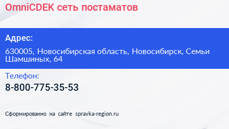 OmniCDEK, сеть постаматов по адресу 630005, Новосибирская область, Новосибирск, Семьи Шамшиных, 64 в дальнейшем Организация, размещена в следующих категориях: