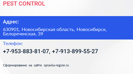 PEST CONTROL по адресу 630901, Новосибирская область, Новосибирск, Белореченская, 39 в дальнейшем Организация, размещена в следующих категориях: