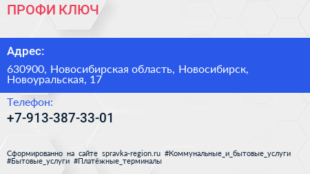 ПРОФИ-КЛЮЧ по адресу 630900, Новосибирская область, Новосибирск, Новоуральская, 17 в дальнейшем Организация, размещена в следующих категориях: