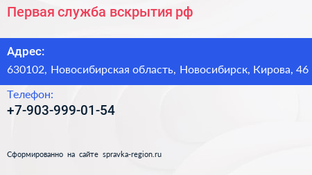 Первая служба вскрытия.рф по адресу 630102, Новосибирская область, Новосибирск, Кирова, 46 в дальнейшем Организация, размещена в следующих категориях: