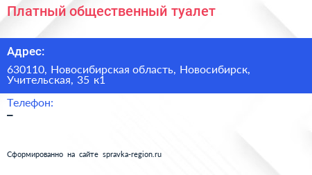 Платный общественный туалет по адресу 630110, Новосибирская область, Новосибирск, Учительская, 35 к1 в дальнейшем Организация, размещена в следующих категориях: