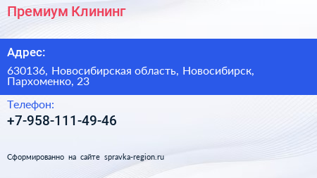 Премиум Клининг по адресу 630136, Новосибирская область, Новосибирск, Пархоменко, 23 в дальнейшем Организация, размещена в следующих категориях:
