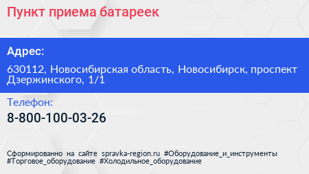 Пункт приема батареек по адресу 630112, Новосибирская область, Новосибирск, проспект Дзержинского, 1/1 в дальнейшем Организация, размещена в следующих категориях: