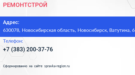 РЕМОНТСТРОЙ по адресу 630078, Новосибирская область, Новосибирск, Ватутина, 6 в дальнейшем Организация, размещена в следующих категориях: