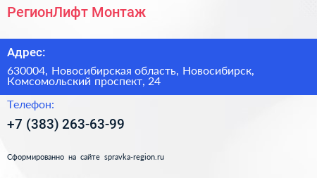 РегионЛифт-Монтаж по адресу 630004, Новосибирская область, Новосибирск, Комсомольский проспект, 24 в дальнейшем Организация, размещена в следующих категориях: