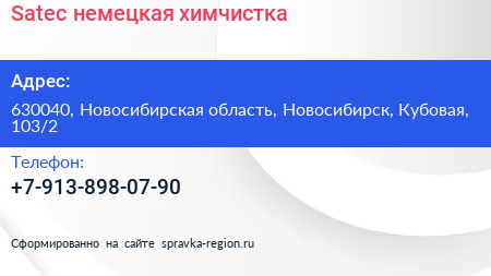 Satec, немецкая химчистка по адресу 630040, Новосибирская область, Новосибирск, Кубовая, 103/2 в дальнейшем Организация, размещена в следующих категориях: