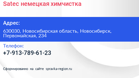 Satec, немецкая химчистка по адресу 630030, Новосибирская область, Новосибирск, Первомайская, 234 в дальнейшем Организация, размещена в следующих категориях: