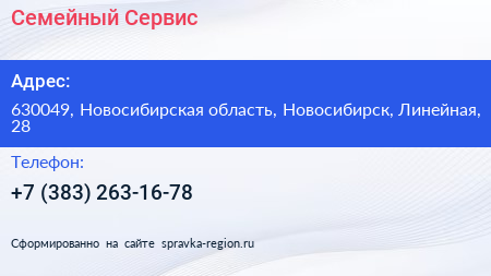 Семейный Сервис по адресу 630049, Новосибирская область, Новосибирск, Линейная, 28 в дальнейшем Организация, размещена в следующих категориях:
