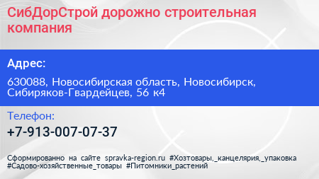 СибДорСтрой, дорожно-строительная компания по адресу 630088, Новосибирская область, Новосибирск, Сибиряков-Гвардейцев, 56 к4 в дальнейшем Организация, размещена в следующих категориях: