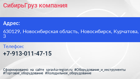 СибирьГруз, компания по адресу 630129, Новосибирская область, Новосибирск, Курчатова, 3 в дальнейшем Организация, размещена в следующих категориях:
