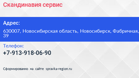 Скандинавия-сервис по адресу 630007, Новосибирская область, Новосибирск, Фабричная, 39 в дальнейшем Организация, размещена в следующих категориях: