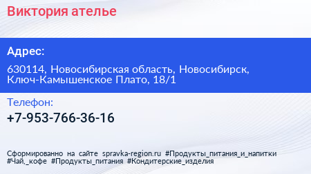 Виктория, ателье по адресу 630114, Новосибирская область, Новосибирск, Ключ-Камышенское Плато, 18/1 в дальнейшем Организация, размещена в следующих категориях: