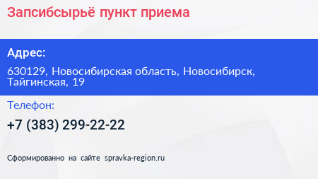 Запсибсырьё, пункт приема по адресу 630129, Новосибирская область, Новосибирск, Тайгинская, 19 в дальнейшем Организация, размещена в следующих категориях: