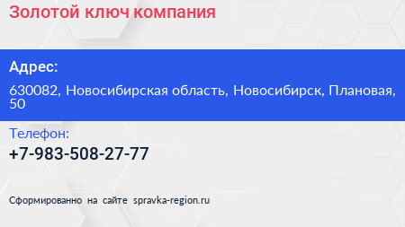 Золотой ключ, компания по адресу 630082, Новосибирская область, Новосибирск, Плановая, 50 в дальнейшем Организация, размещена в следующих категориях: