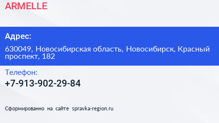 ARMELLE по адресу 630049, Новосибирская область, Новосибирск, Красный проспект, 182 в дальнейшем Организация, размещена в следующих категориях: