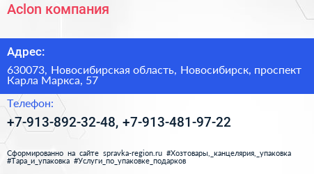 Aclon, компания по адресу 630073, Новосибирская область, Новосибирск, проспект Карла Маркса, 57 в дальнейшем Организация, размещена в следующих категориях: