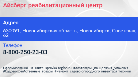 Айсберг, реабилитационный центр по адресу 630091, Новосибирская область, Новосибирск, Советская, 62 в дальнейшем Организация, размещена в следующих категориях: