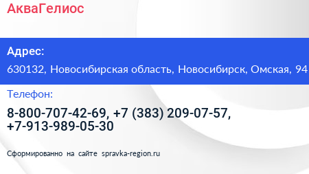 АкваГелиос по адресу 630132, Новосибирская область, Новосибирск, Омская, 94 в дальнейшем Организация, размещена в следующих категориях: