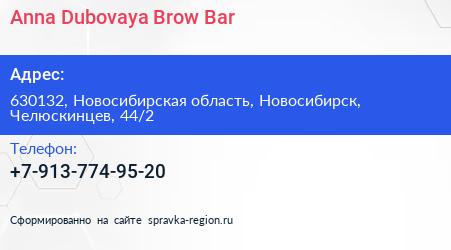 Anna Dubovaya Brow Bar по адресу 630132, Новосибирская область, Новосибирск, Челюскинцев, 44/2 в дальнейшем Организация, размещена в следующих категориях: