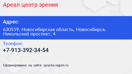 Ареал, центр зрения по адресу 630559, Новосибирская область, Новосибирск, Никольский проспект, 4 в дальнейшем Организация, размещена в следующих категориях: