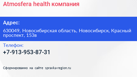 Atmosfera-health, компания по адресу 630049, Новосибирская область, Новосибирск, Красный проспект, 153в в дальнейшем Организация, размещена в следующих категориях: