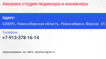 Аверика, студия педикюра и маникюра по адресу 630091, Новосибирская область, Новосибирск, Фрунзе, 15 в дальнейшем Организация, размещена в следующих категориях: