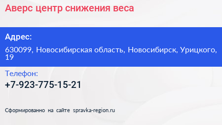 Аверс, центр снижения веса по адресу 630099, Новосибирская область, Новосибирск, Урицкого, 19 в дальнейшем Организация, размещена в следующих категориях:
