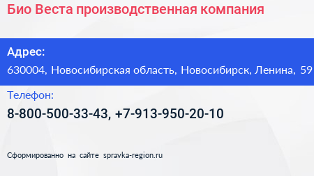 Био-Веста, производственная компания по адресу 630004, Новосибирская область, Новосибирск, Ленина, 59 в дальнейшем Организация, размещена в следующих категориях: