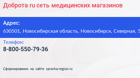 Доброта.ru, сеть медицинских магазинов по адресу 630501, Новосибирская область, Новосибирск, Северная, 5 в дальнейшем Организация, размещена в следующих категориях: