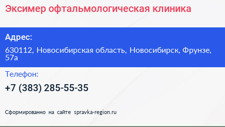 Эксимер, офтальмологическая клиника по адресу 630112, Новосибирская область, Новосибирск, Фрунзе, 57а в дальнейшем Организация, размещена в следующих категориях:
