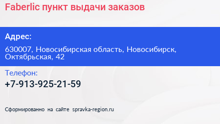 Faberlic, пункт выдачи заказов по адресу 630007, Новосибирская область, Новосибирск, Октябрьская, 42 в дальнейшем Организация, размещена в следующих категориях: