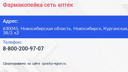 Фармакопейка, сеть аптек по адресу 630045, Новосибирская область, Новосибирск, Курганская, 38/2 к2 в дальнейшем Организация, размещена в следующих категориях: