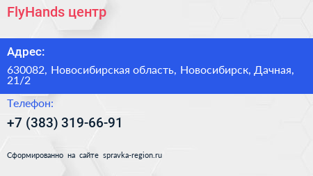 FlyHands, центр по адресу 630082, Новосибирская область, Новосибирск, Дачная, 21/2 в дальнейшем Организация, размещена в следующих категориях: