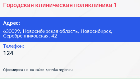 Городская клиническая поликлиника №1 по адресу 630099, Новосибирская область, Новосибирск, Серебренниковская, 42 в дальнейшем Организация, размещена в следующих категориях:
