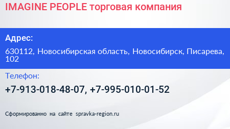 IMAGINE PEOPLE, торговая компания по адресу 630112, Новосибирская область, Новосибирск, Писарева, 102 в дальнейшем Организация, размещена в следующих категориях: