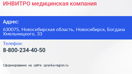 ИНВИТРО, медицинская компания по адресу 630075, Новосибирская область, Новосибирск, Богдана Хмельницкого, 33 в дальнейшем Организация, размещена в следующих категориях: