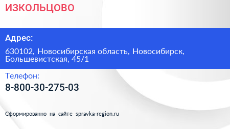 ИЗКОЛЬЦОВО по адресу 630102, Новосибирская область, Новосибирск, Большевистская, 45/1 в дальнейшем Организация, размещена в следующих категориях: