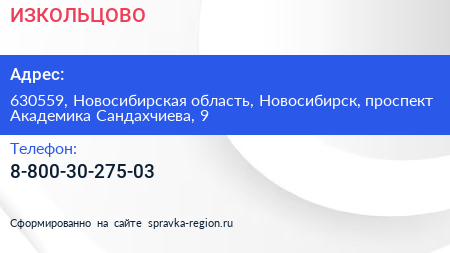 ИЗКОЛЬЦОВО по адресу 630559, Новосибирская область, Новосибирск, проспект Академика Сандахчиева, 9 в дальнейшем Организация, размещена в следующих категориях: