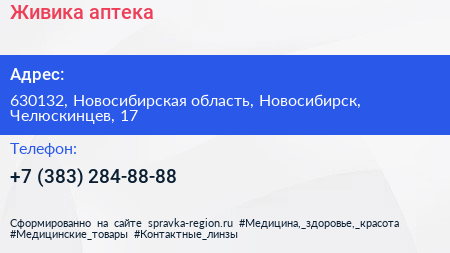 Живика, аптека по адресу 630132, Новосибирская область, Новосибирск, Челюскинцев, 17 в дальнейшем Организация, размещена в следующих категориях: