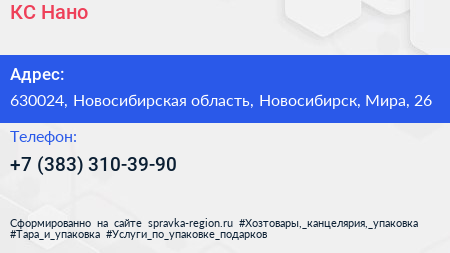 КС-Нано по адресу 630024, Новосибирская область, Новосибирск, Мира, 26 в дальнейшем Организация, размещена в следующих категориях: