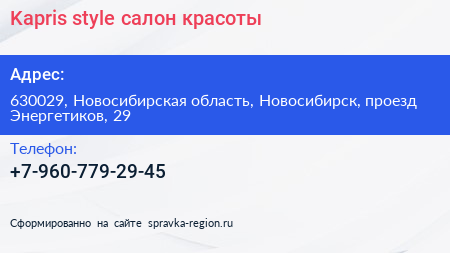 Kapris style, салон красоты по адресу 630029, Новосибирская область, Новосибирск, проезд Энергетиков, 29 в дальнейшем Организация, размещена в следующих категориях: