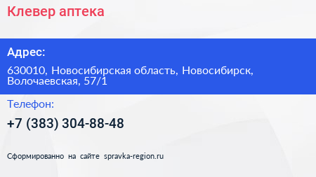 Клевер, аптека по адресу 630010, Новосибирская область, Новосибирск, Волочаевская, 57/1 в дальнейшем Организация, размещена в следующих категориях: