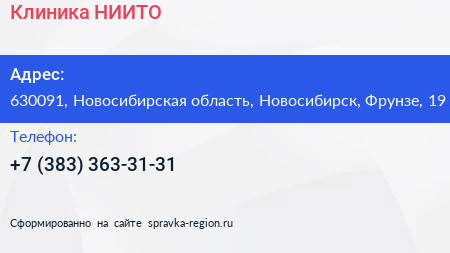 Клиника НИИТО по адресу 630091, Новосибирская область, Новосибирск, Фрунзе, 19 в дальнейшем Организация, размещена в следующих категориях: