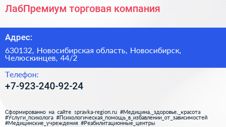 ЛабПремиум, торговая компания по адресу 630132, Новосибирская область, Новосибирск, Челюскинцев, 44/2 в дальнейшем Организация, размещена в следующих категориях: