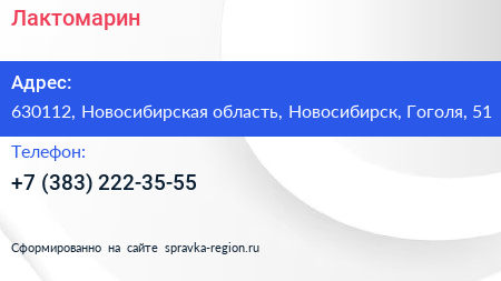 Лактомарин по адресу 630112, Новосибирская область, Новосибирск, Гоголя, 51 в дальнейшем Организация, размещена в следующих категориях: