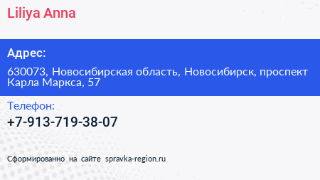Liliya & Anna по адресу 630073, Новосибирская область, Новосибирск, проспект Карла Маркса, 57 в дальнейшем Организация, размещена в следующих категориях: