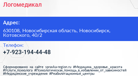 Логомедикал по адресу 630108, Новосибирская область, Новосибирск, Котовского, 40/2 в дальнейшем Организация, размещена в следующих категориях: